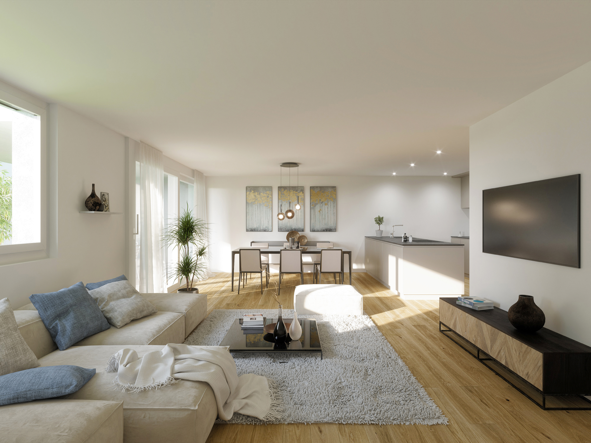 Das breit gefächerte Angebot von 2.5- bis 5.5-Zimmerwohnungen bietet Familien, Alleinstehenden, Paaren und Senioren optimale Auswahlmöglichkeiten. Die Häuser bestechen durch eine dem Dorfkern angeglichene und dennoch moderne, klare Formensprache. Alle Einheiten verfügen über einen offen gestalteten Wohn-, Ess- und Kochbereich mit direktem Zugang auf den Balkon oder zur Terrasse. Zusätzlich gewinnen die Wohnungen im 2. Obergeschoss durch den Ausbau des Dachgeschosses (Maisonette) an Attraktivität. Mit dem Bauen nach MINERGIE-Standard wird eine sehr gute, zukunfts-orientierte Bau- und somit auch eine hohe Lebensqualität erreicht.